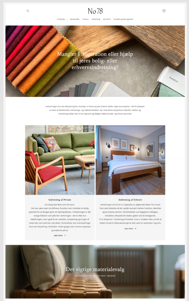 In summary, this strategic reorganization of Nova Møbler to No78 is a very time-consuming process, which is far from finished – even though the website now appears established. Rearranging one’s identity is also about evolution, and it must be maintained. This entails many basic elements that also need to be better structured, so that the customer gets the best possible buying experience in No78.