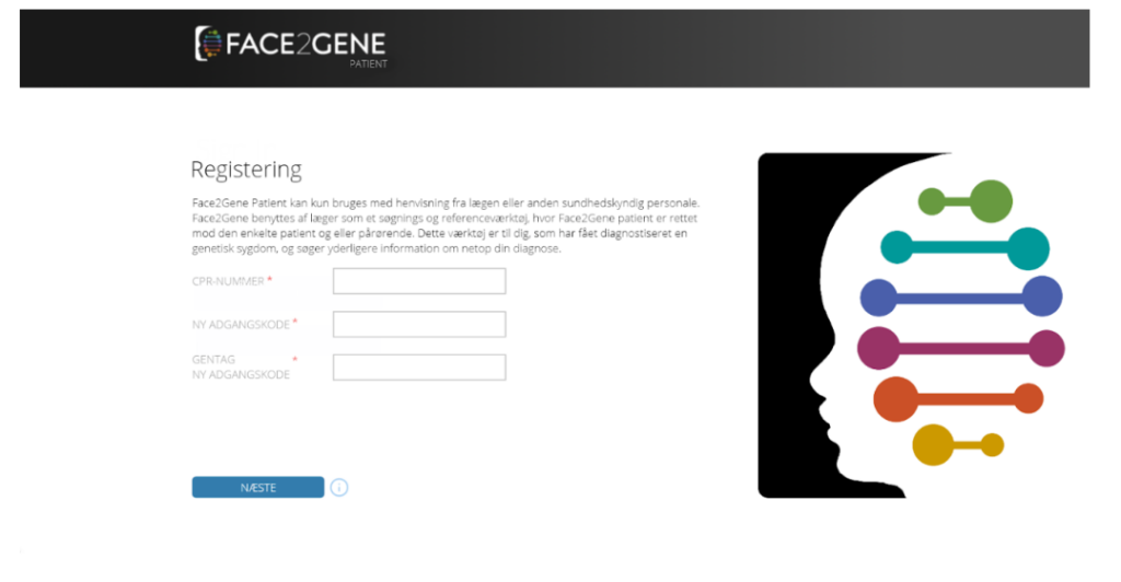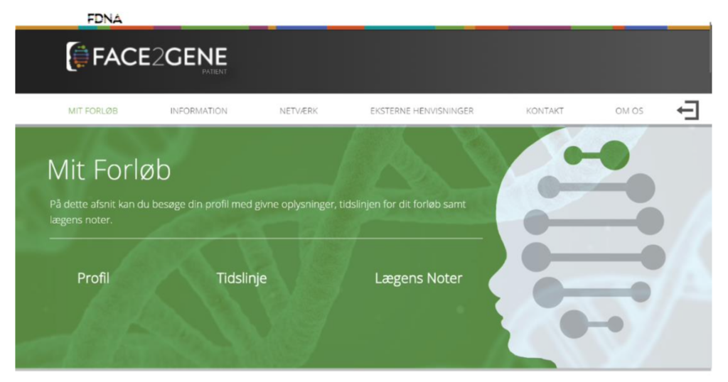 Based on the method of Design Thinking, we have developed Face2Gene Patient as an extension to the existing interface Face2Gene. The difference is that Face2Gene Patient has been developed with the patient/the next of kin as the primary target group, which is why the many functions on Face2Gene have been cut out so that only the most important information is passed on to the patient/next of kin. Face2Gene Patient is both personal and individualized. Personal, as it is targeted to a certain target audience; especially people in contact with genetic diseases. Individualized, as the software is adapted to the course of each individual through their danish CPR.